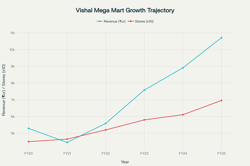 Vishal Mega Mart Growth Trajectory – Revenue and Store Expansion (FY20-FY25)